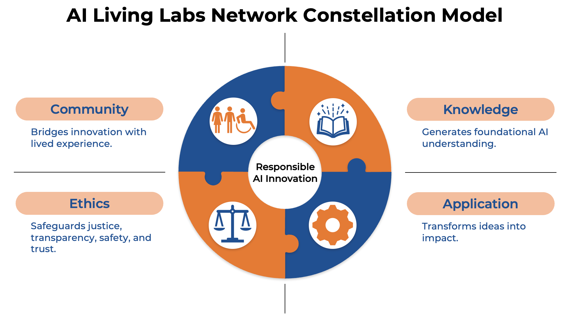 The AI Living Labs Network is an inclusive membership group that helps to shape the future of ethical, socially responsive artificial intelligence. The AI Living Labs Network leverages the Constellation Model of Responsible AI Innovation, connecting research work from multiple disciplines in a dynamic, adaptive ecosystem to ensure AI serves the common good and advances trust and equity across society.