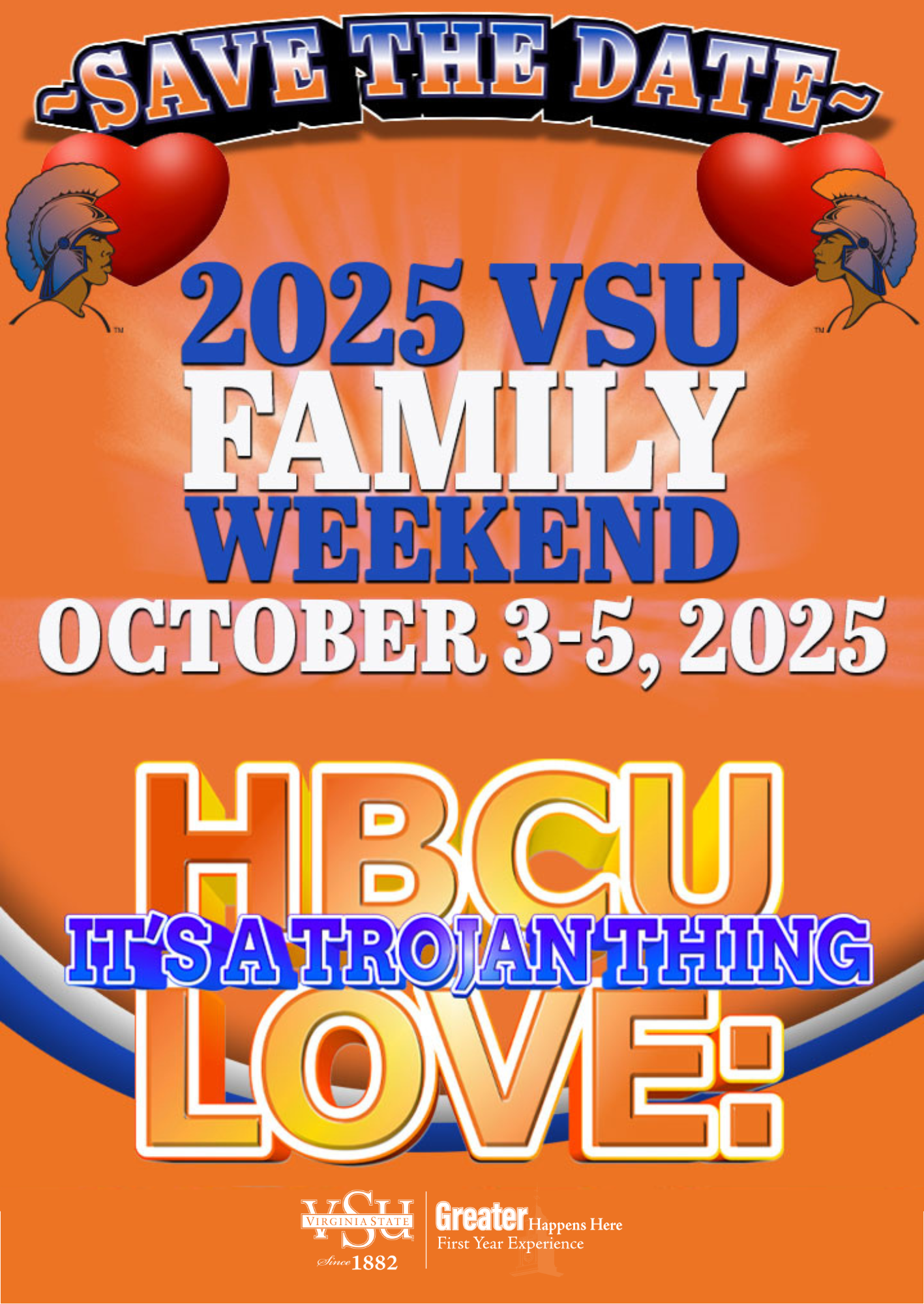 We're glad you're a part of the Virginia State University family, so let's celebrate! Join us for a weekend filled with networking, access to Trojan resources, University updates, and Trojan football as a family. Registration is now open for the 2025 VSU Family Weekend, which is open to all parents, family members, and friends of VSU students.