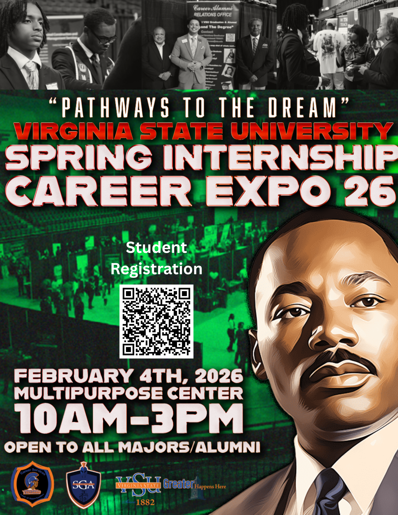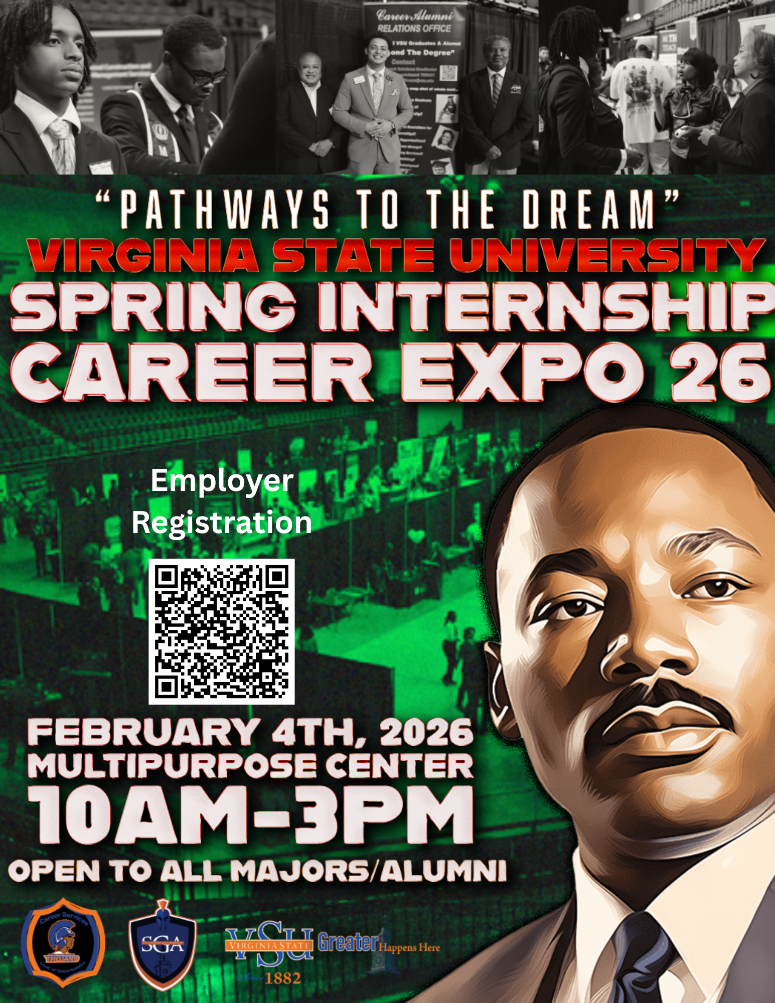 Virginia State University Career Services is dedicated to helping VSU students and alumni with exploring career options and empowering them to achieve their career and educational goals. Our goal is to provide the highest quality of service and opportunities for our students, alumni, employers, faculty, staff, parents and the community.